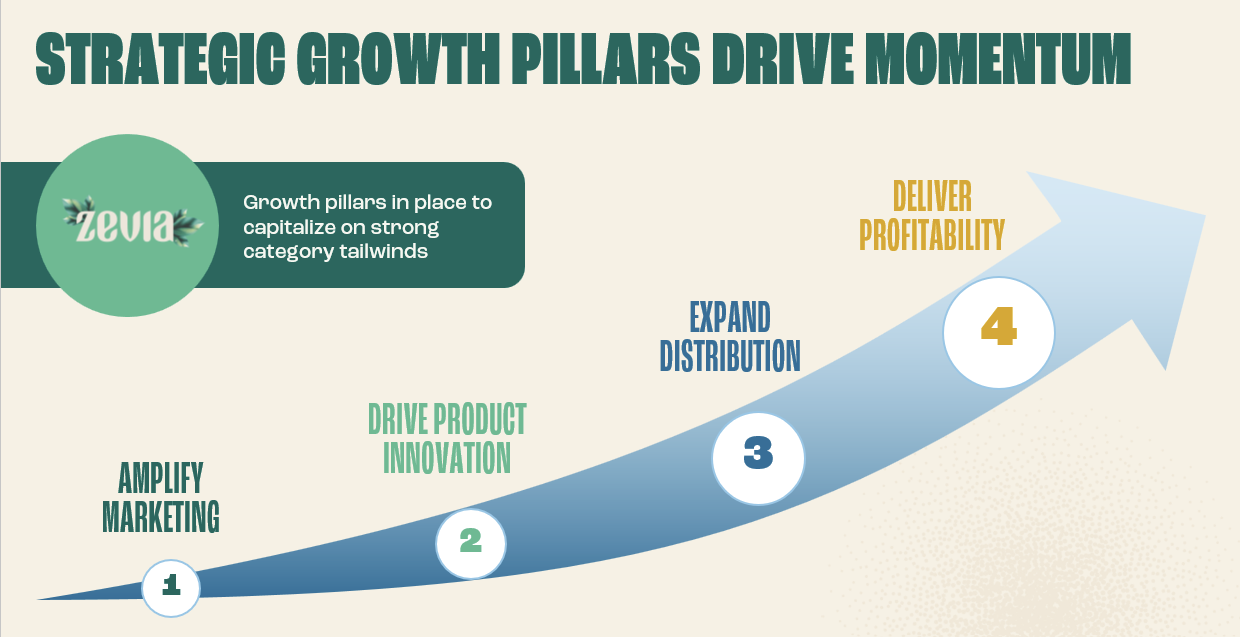 “Consumers choose Zevia because they love the taste and trust the brand. It’s exciting to see more and more people discovering their Zevia flavor in a drink they feel good about. Making great-tasting, zero sugar beverages with natural ingredients -- and making better-for-you affordable -- is what drives our passionate team every day. With a strengthened, experienced leadership team, we are scaling the business for profitable growth going forward, and accelerating the fulfillment of our mission to impact global health.”